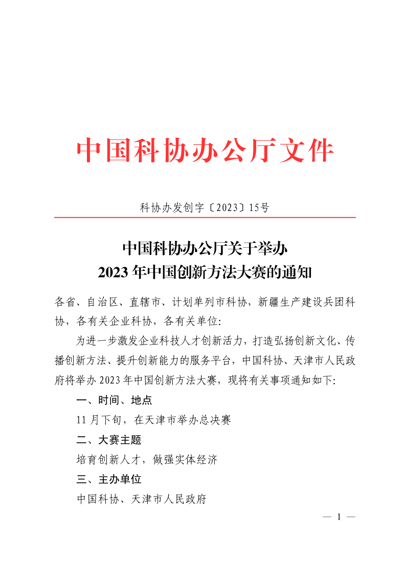 2023年中国创新方法大赛通知
