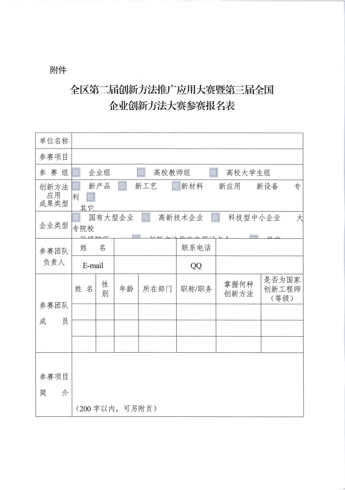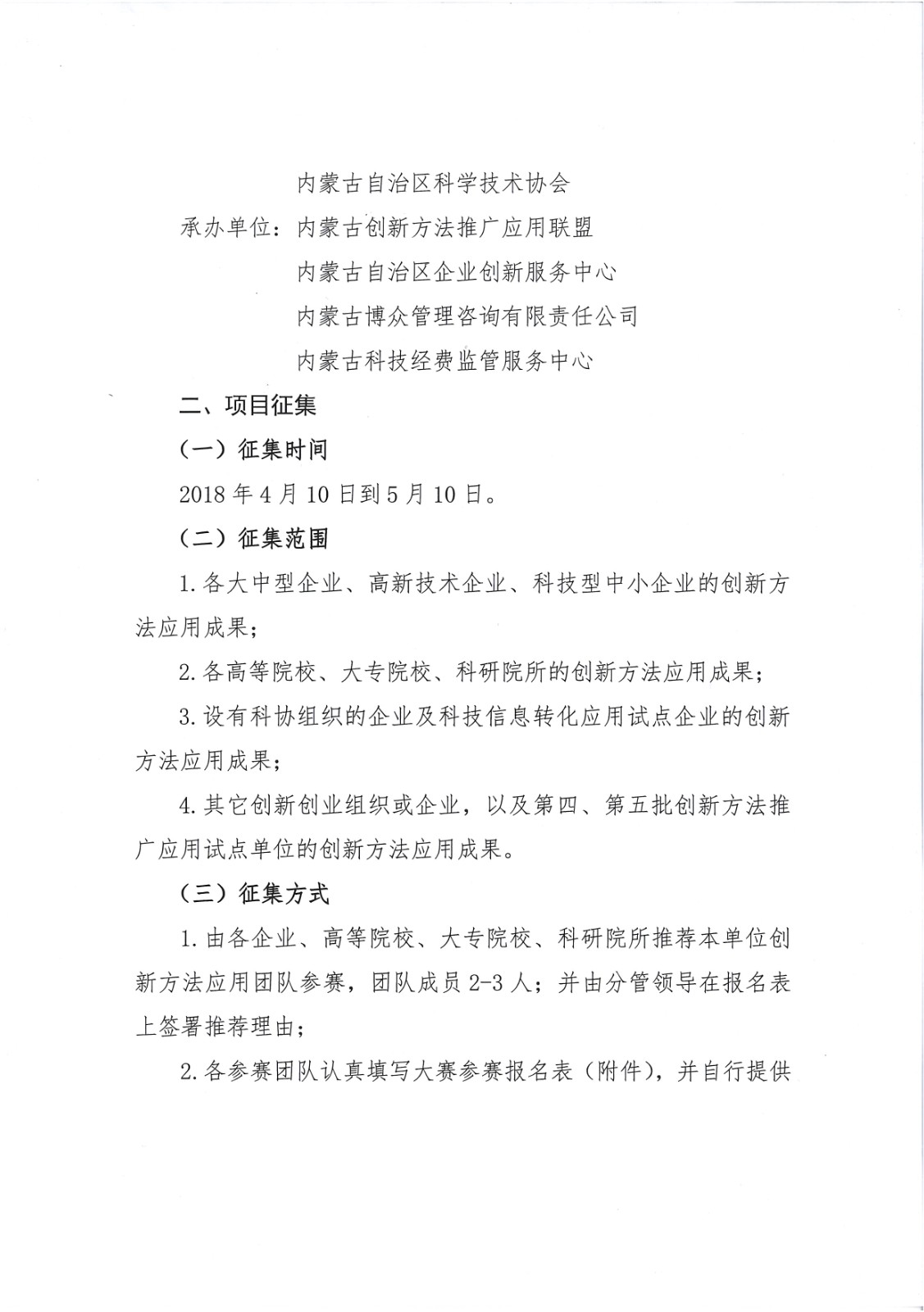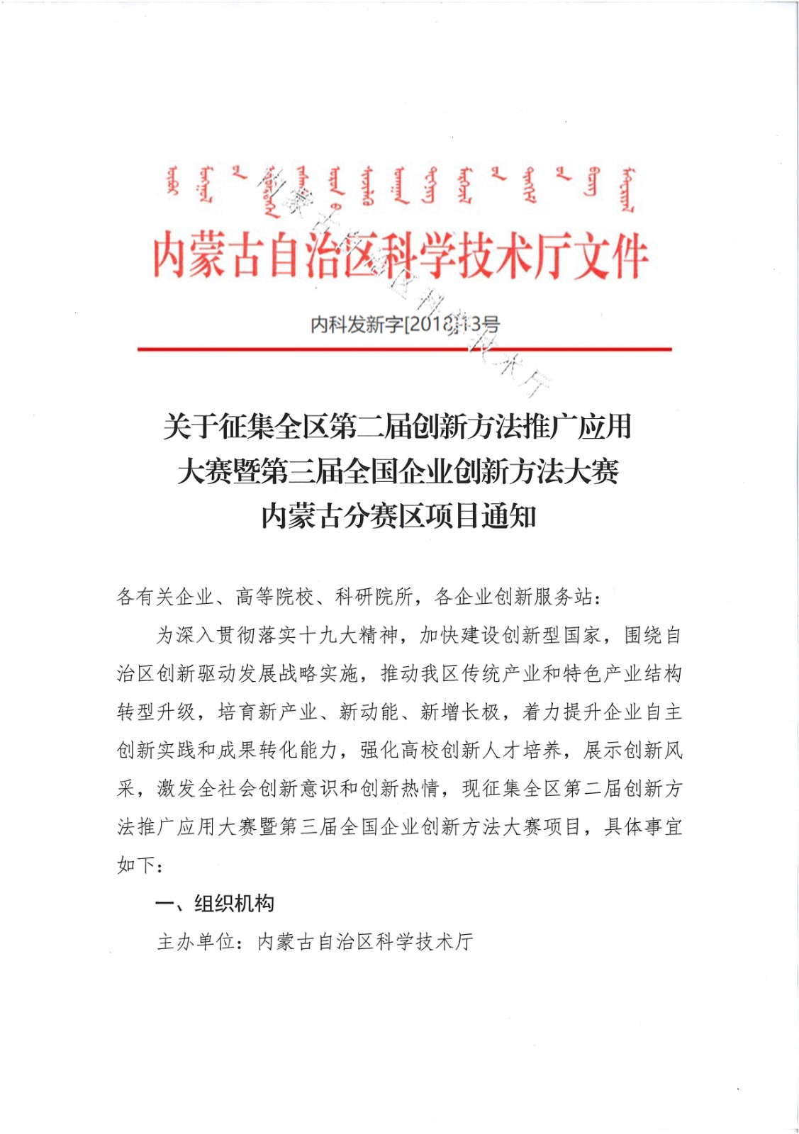 关于征集全区第二届创新方法推广应用大赛暨第三届全国企业创新方法大赛内蒙古分赛区项目通知