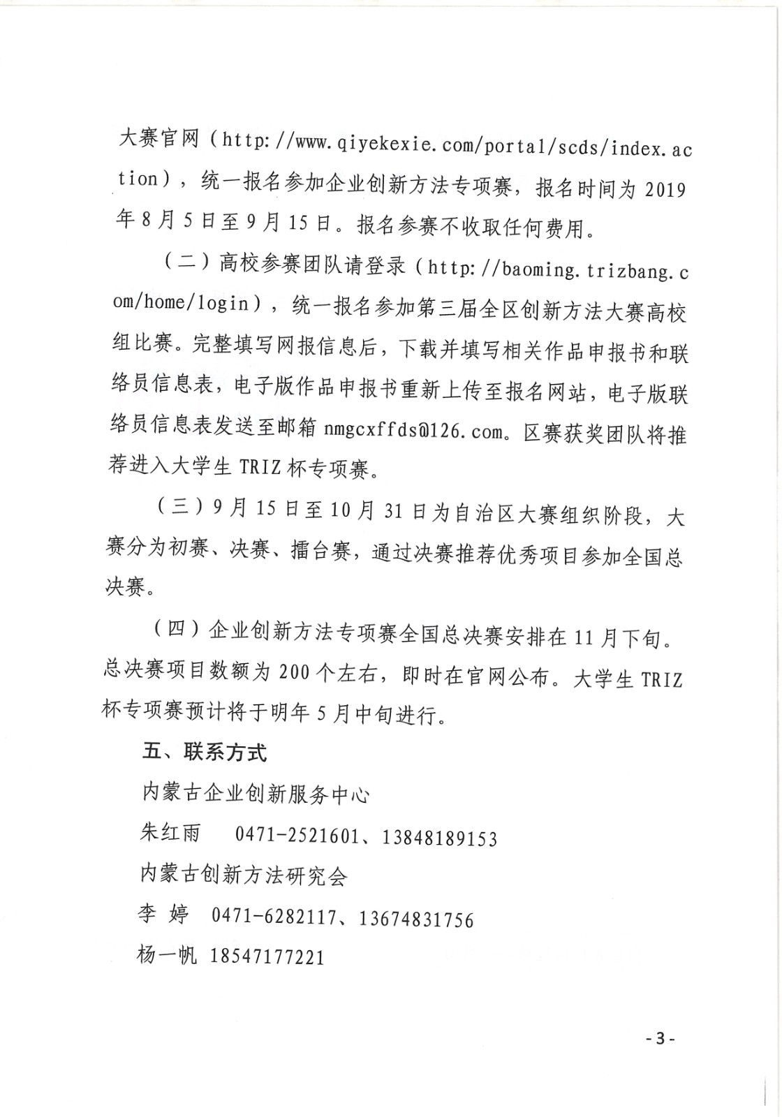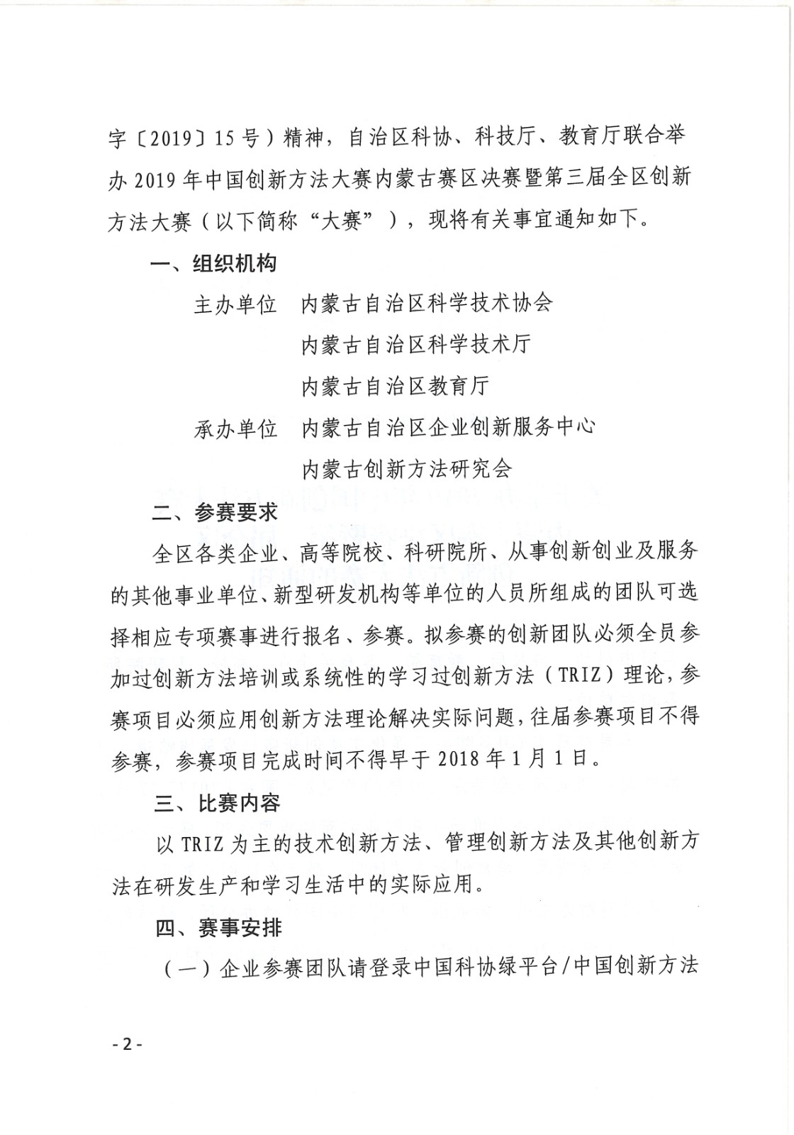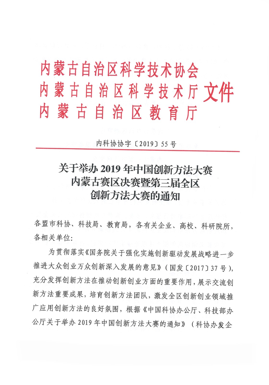 关于举办2019年中国创新方法大赛内蒙古赛区决赛暨第三届全区创新方法大赛的通知