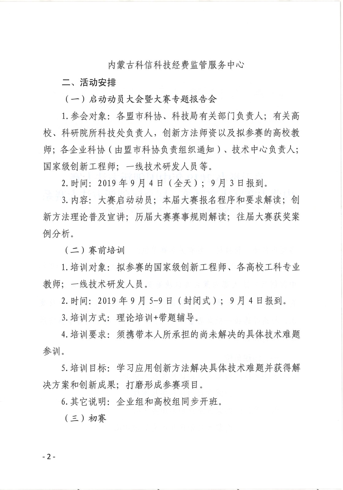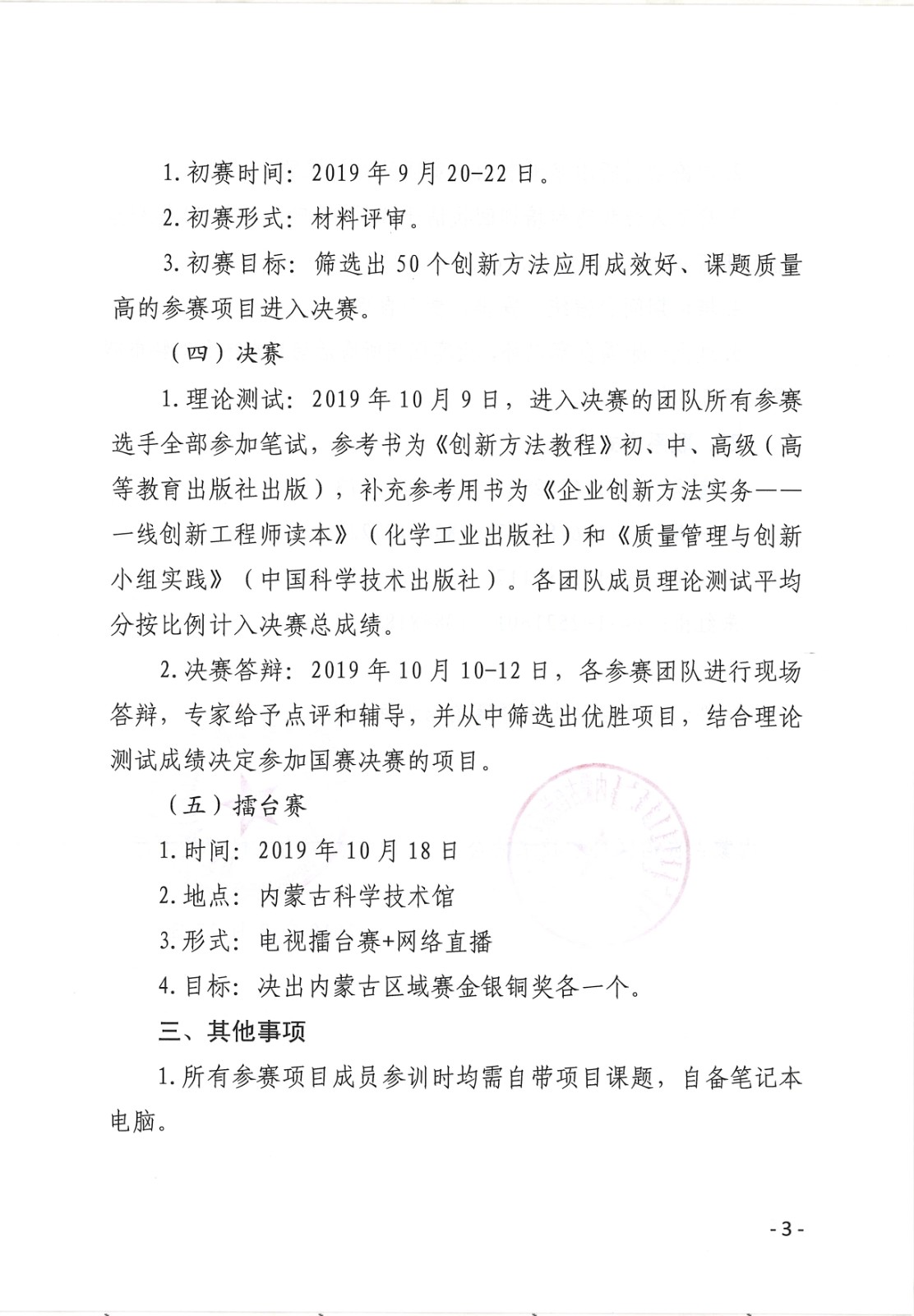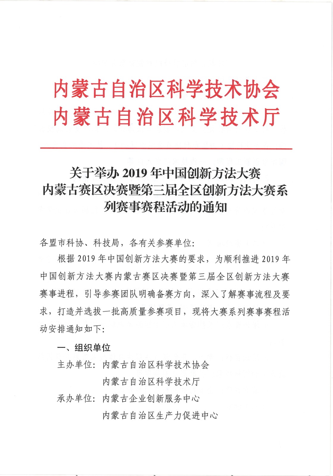关于举办2019年中国创新方法大赛内蒙古赛区决赛暨第三届全区创新方法大赛系列赛事赛程活动的通知
