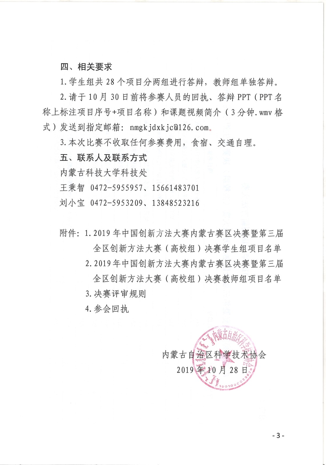 关于举办2019年中国创新方法大赛内蒙古赛区决赛暨第三届全区创新方法大赛(高校组)决赛的通知