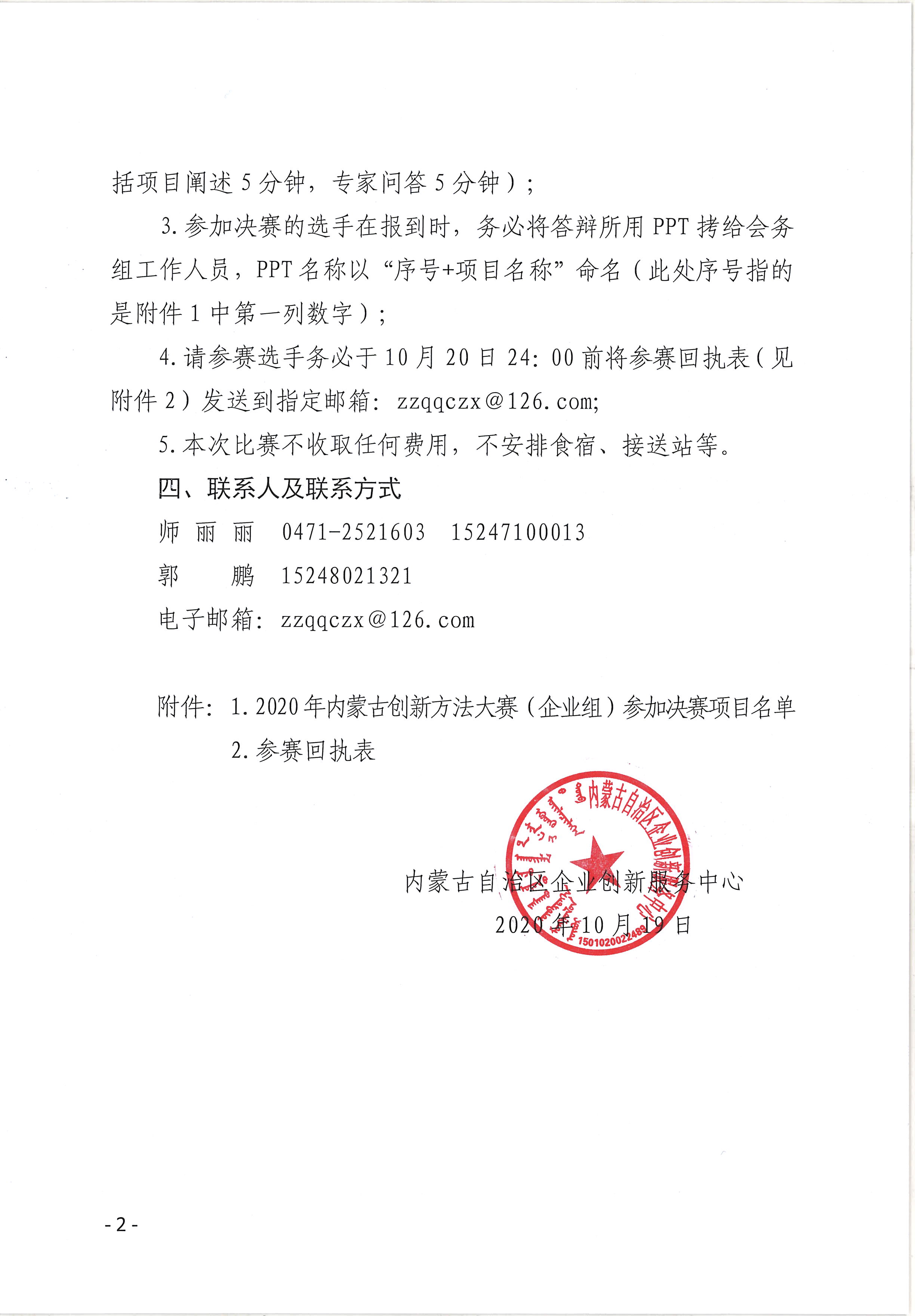 关于举办2020年内蒙古创新方法大赛(企业组)决赛的通知