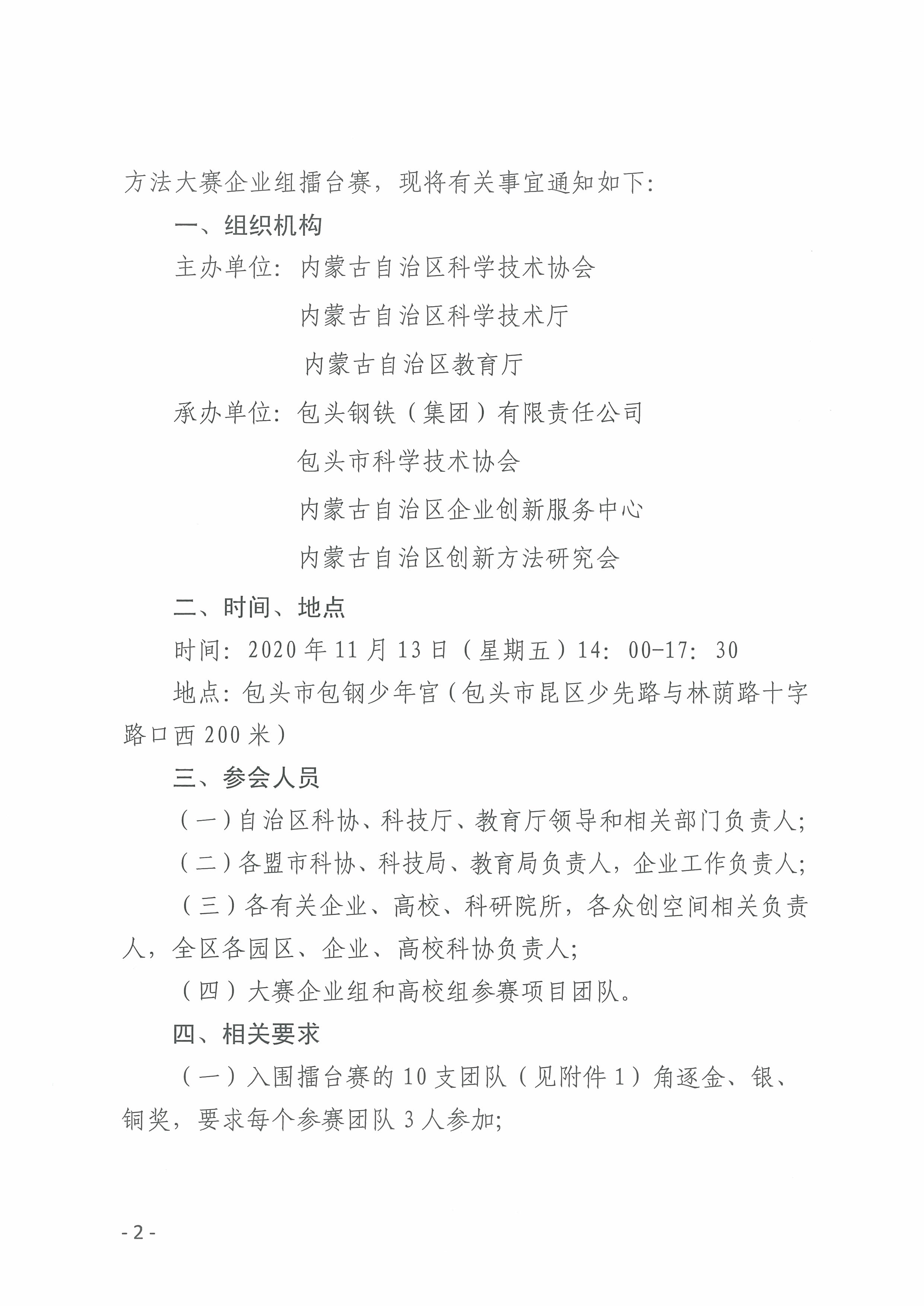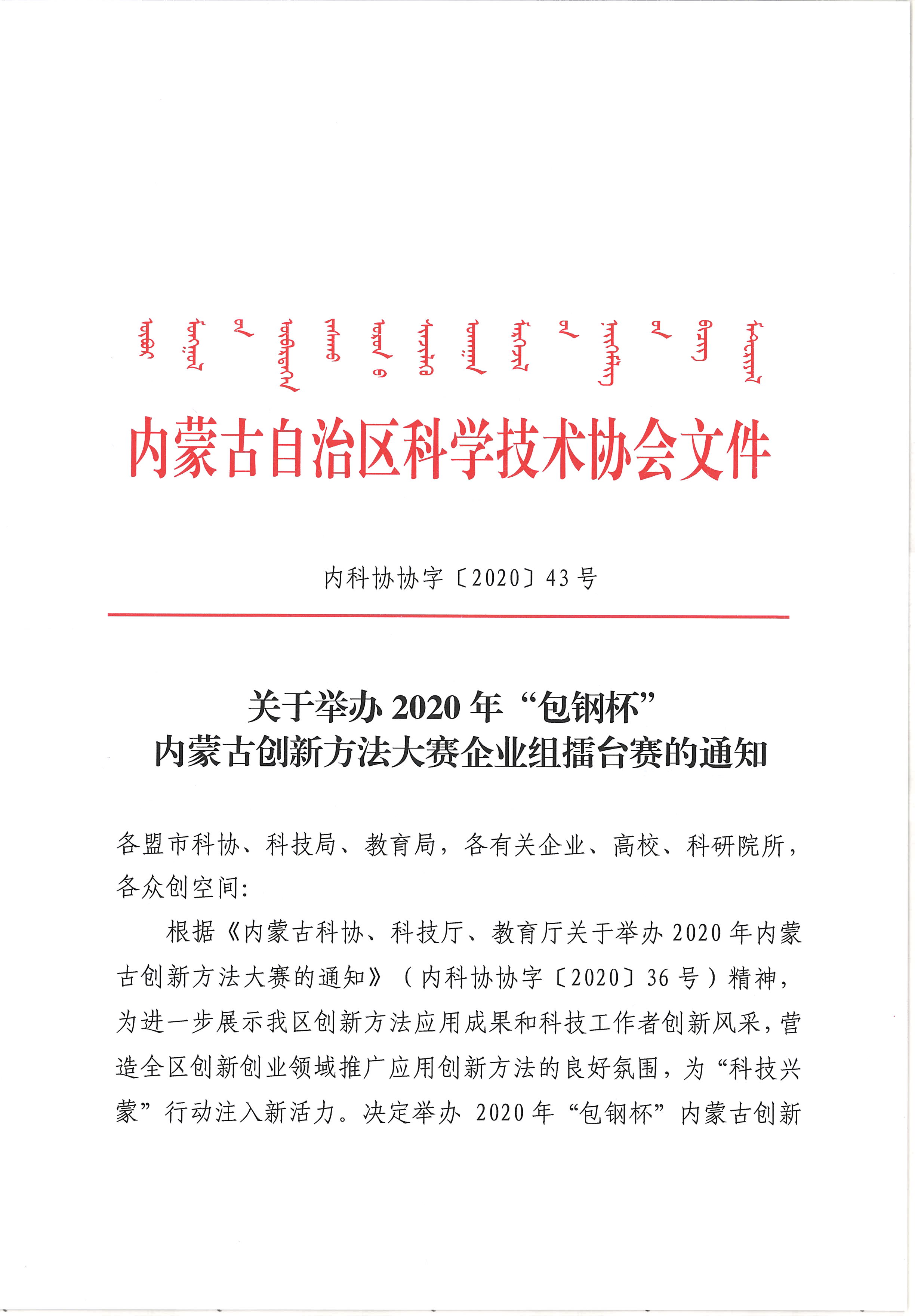 关于举办2020年”包钢杯“内蒙古创新方法大赛企业组擂台赛的通知