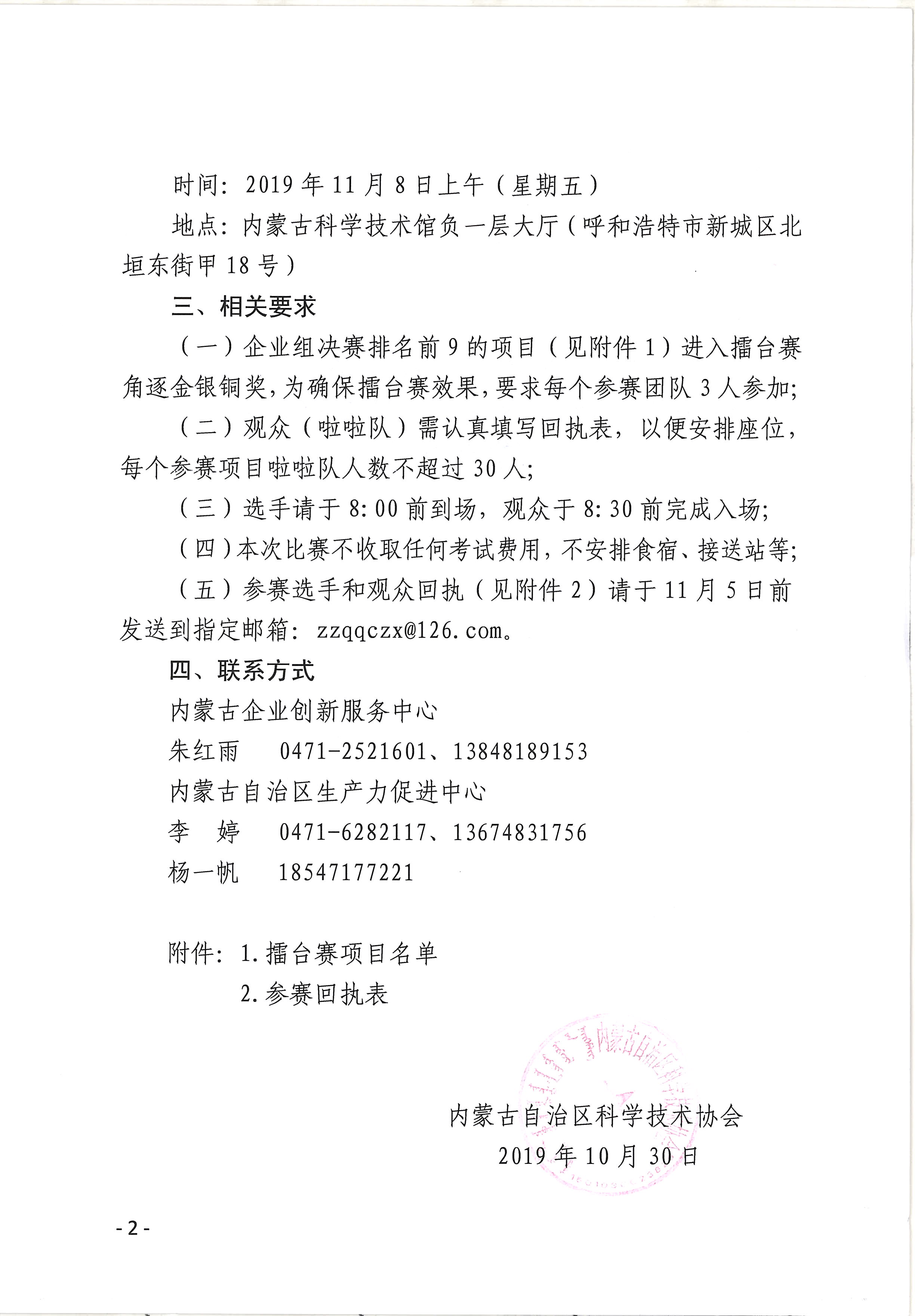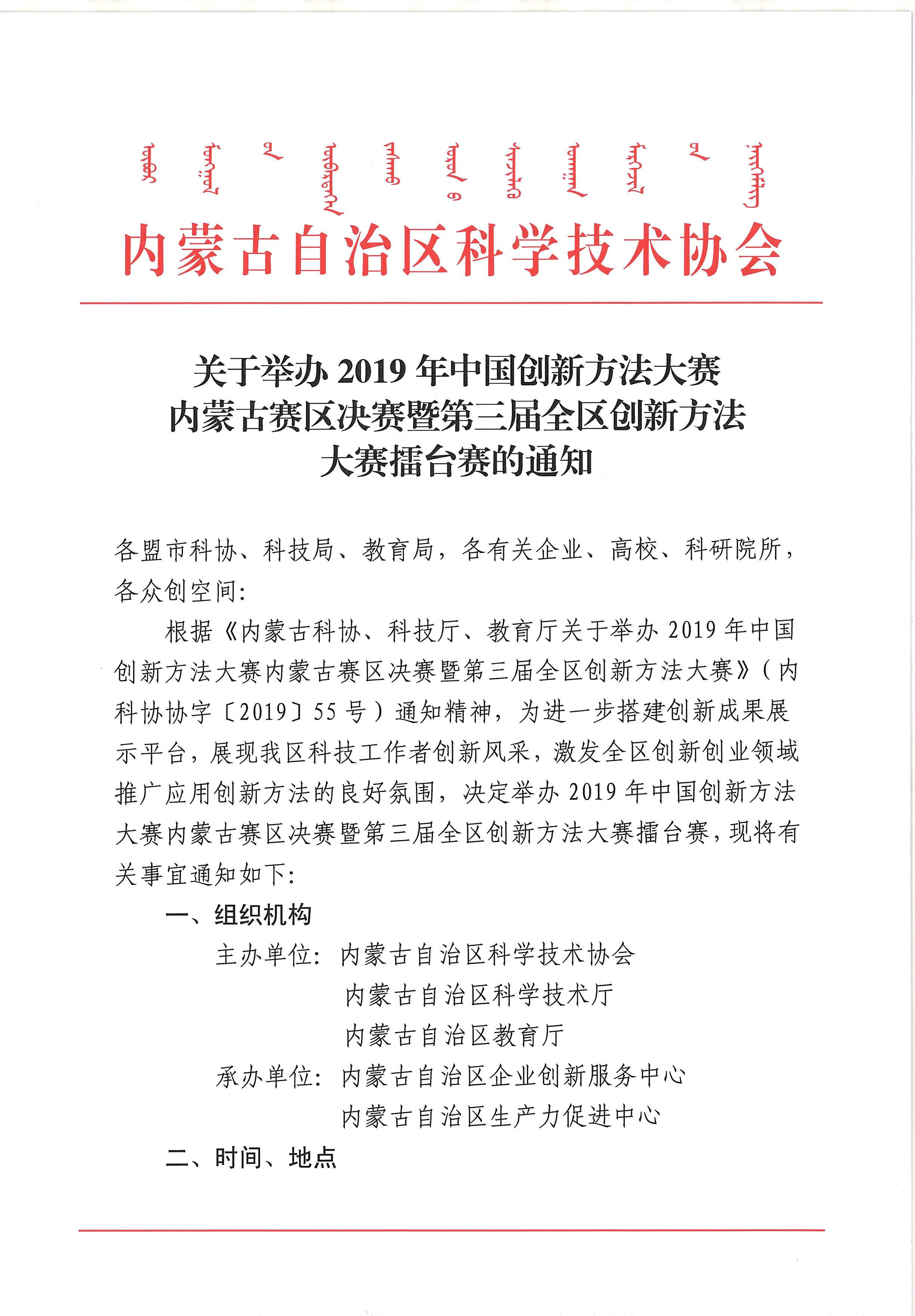 关于举办2019年中国创新方法大赛内蒙古赛区决赛暨第三届全区创新方法大赛擂台赛的通知