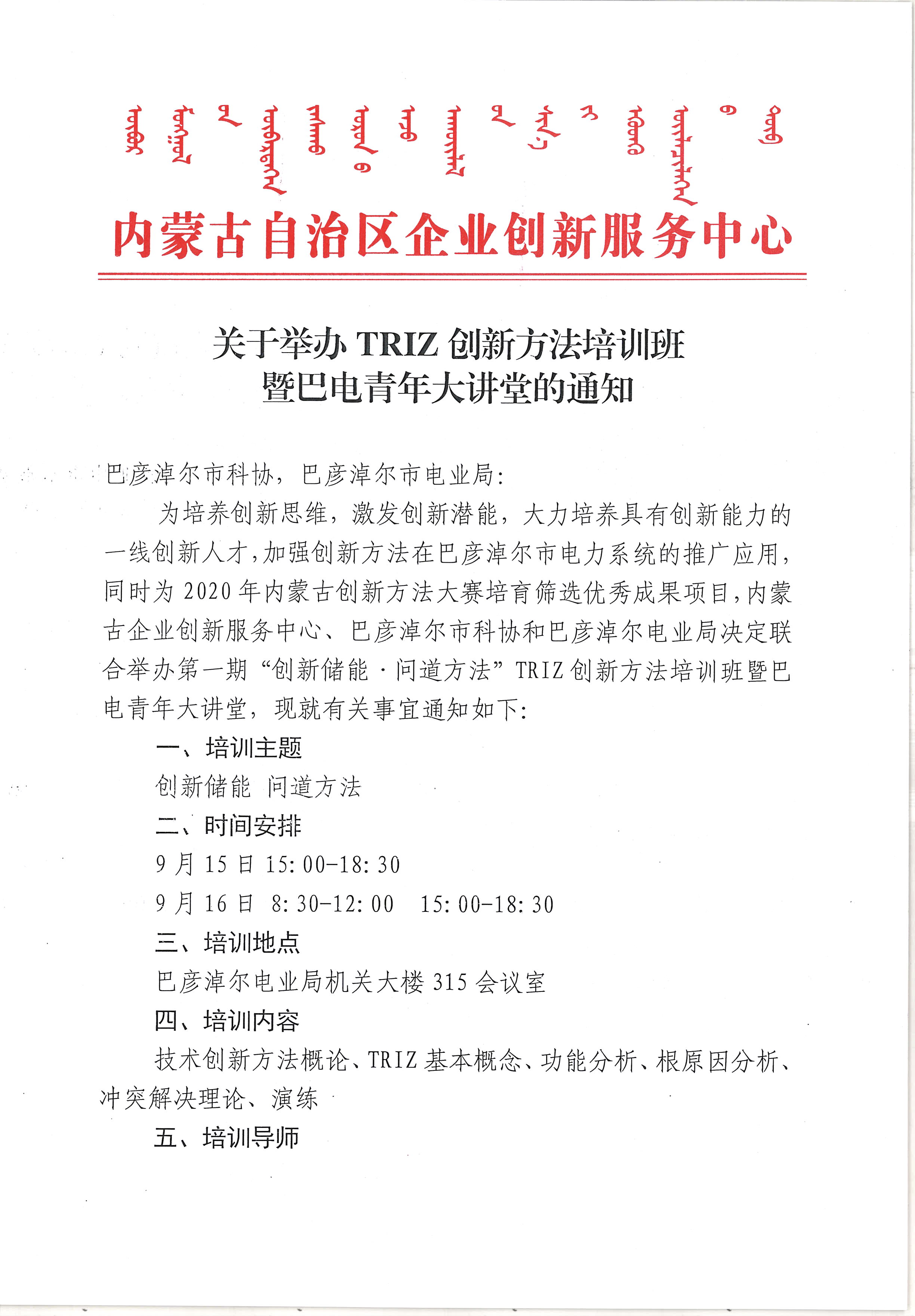 关于举办TRIZ创新方法培训班暨巴电青年大讲堂的通知